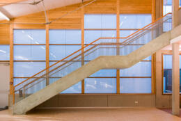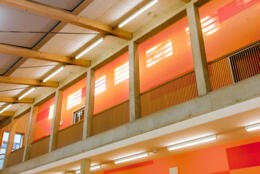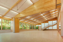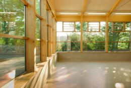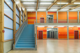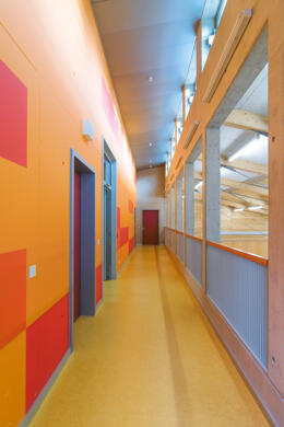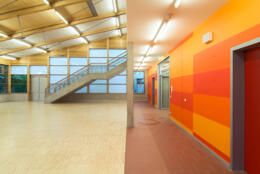 Funktionale Erweiterung des Bestandsgebäudes zur Ganztagesbetreuung um einen Neubau mit Mensa/Veranstaltungshalle, Klassen und Gruppenräumen.