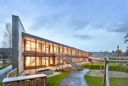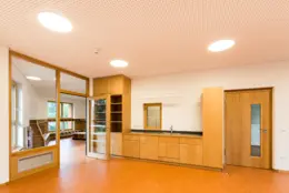 Neuerrichtung des Kindergartens auf der bestehenden Parzelle mit fünf Gruppen und Hortbetreuung. Abbruch des Bestandsgebäudes nach Umzug in den Neubau und Neuerstellung der umliegenden Freiflächen.
